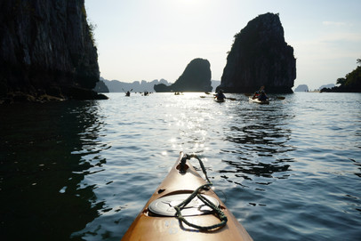 My fears melted away as we left the busy port behind and were soon the only boat in sight. It was magical to glide silently past the krast islands, surrounded by the still, turquoise water. This was definitely my highlight of our Vietnam trip! We had a seafood barbecue on the beach, went sea kayaking, explored caves and a local floating fishing village/pearl farm.